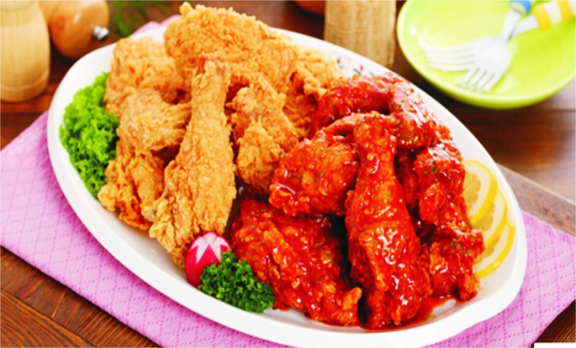 炸鸡有原味还有微辣的、大葱、香甜或者半只的,价格从90-100元/只不等。推荐一只双拼,原味+微辣,95元一份。