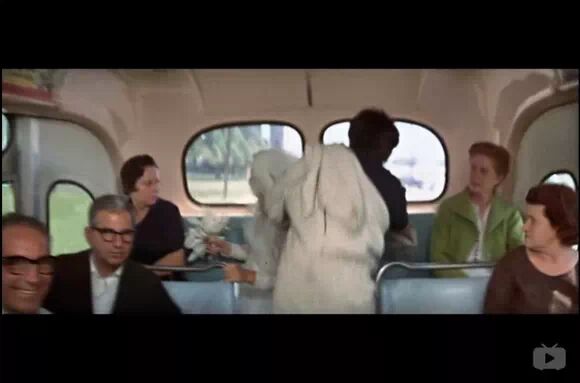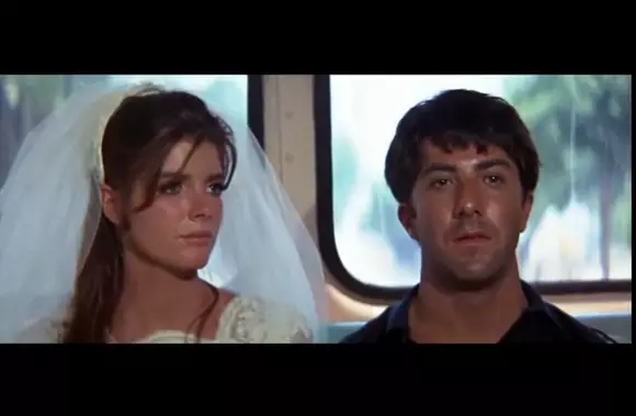 在影片结尾处,教堂抢婚之后,班杰明和妹子一起跑上一个小公交。两个人都非常兴奋。