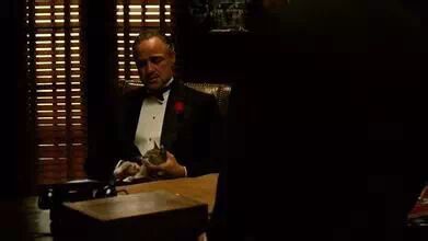 当教父唐·科里昂平和地给殡葬业者包那萨拉解释什么是“友谊”的时候,第一个全身镜头里来了一个不速之客:一只灰白相间的猫坐在了马龙·白兰度的膝盖上。导演科波拉说:“马龙手中的猫并不是计划内的。我看到它在摄影棚内转悠,于是就把它抱到马龙的手上。”白兰度非常爱小孩和宠物,于是就顺理成章了。但这差点毁了那一组镜头,我们的收音团队根本听不清白兰度的台词,害怕要用到对白字幕才行。问题就出在那只猫身上,它咕噜咕噜的喘息声盖过了白兰度的声音,当你看影片的时候,你还能听到。“