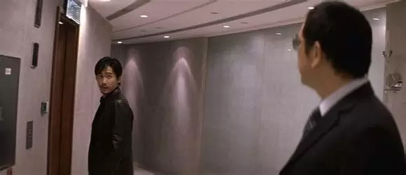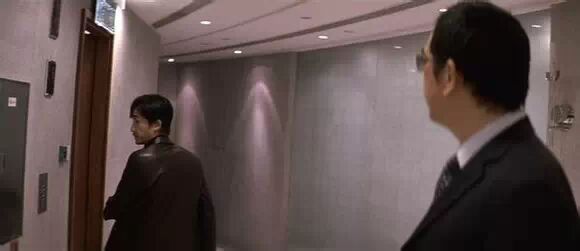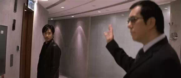 这一句“喂”是黄秋生莫名其妙脱口而出,并非剧本所有。梁朝伟的茫然回头是真实反应。当你看完影片回想的时候,会发现这一段仿佛讲禅的对话,是两人之间最后的对白。如果是王家卫电影,这里应该响起梁朝伟的画外音:“我当时并不明白他的意思。我不知道他为什么要叫住我,却又什么也没说。他是一个很奇怪的人,我一直都知道。但十二分零七秒之后,他落在我身后那辆出租车的车顶上。我好像突然明白了他的意思。”