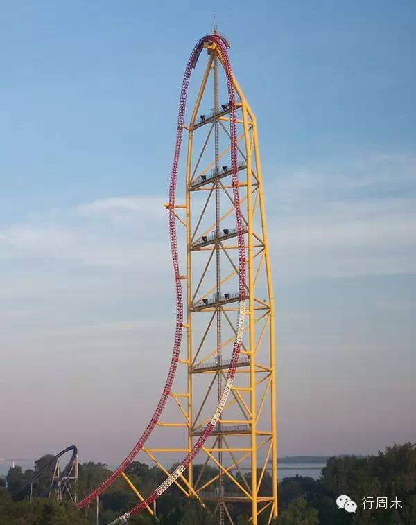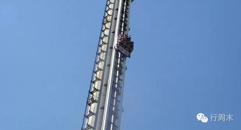 这绝对是世界上最疯狂刺激的过山车:高度40层楼高(128米),在出发4秒内达到最大速度,在开始攀爬到90度的倾斜弯时,有个逆时针的90度的翻转,然后过山车直接冲到128米的高度,越过制高点从另一边直下,再来个270度的顺时针翻转,然后通过电磁减速装置,使车既快又舒适的停止。全程仅30秒。仿佛一瞬间从天堂直坠地狱,太多的人由于过度刺激而流下激动的尿水!据说最大的感觉是:死过一回,绝不再来。