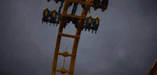 随后,过山车借助惯性冲力,沿90度垂直的轨道把20位乘客送到139米的高处,然后再垂直往下冲,完成一个垂直向下四分之三旋转和一个39米高的缓斜坡,并在下坡时使用电磁刹车并跑回终点,全程需时仅仅28秒。