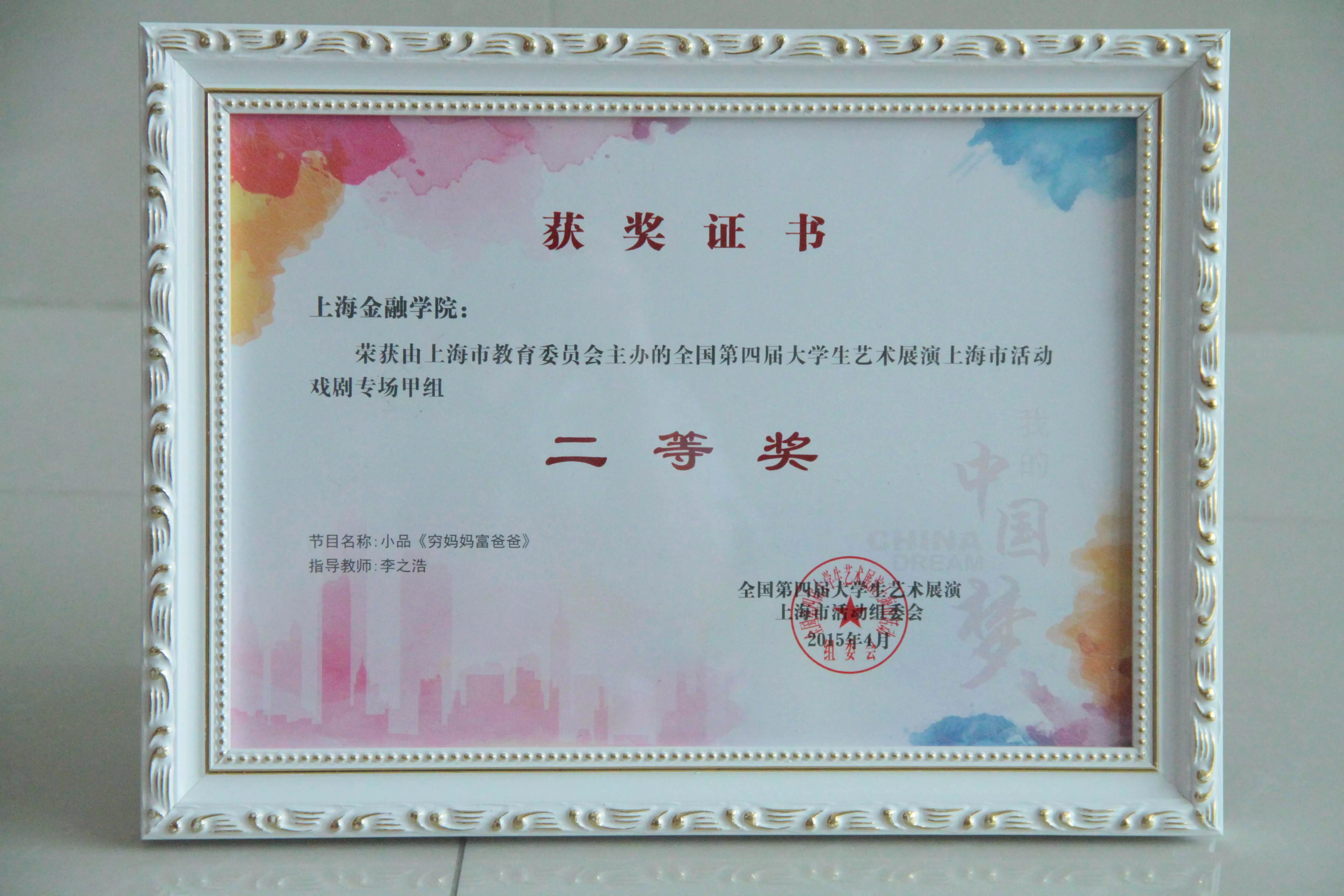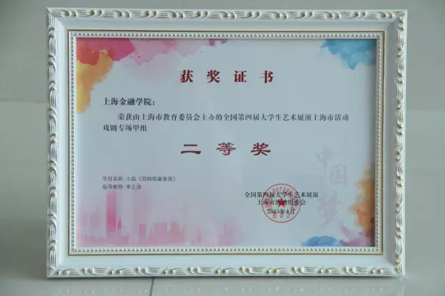 小品《穷爸爸富妈妈》荣获全国第四届大学生艺术展演戏剧专场中甲组二等奖,指导教师:李之浩