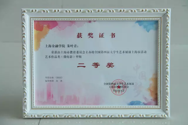 朱叶青的《自由》荣获全国第四届大学生艺术展演微电影中甲组二等奖,指导教师:白涛