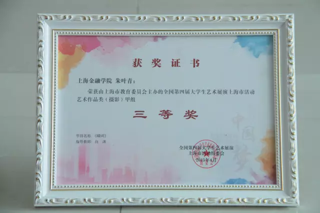 朱叶青的《瞬间》荣获全国第四届大学生艺术展演摄影中甲组三等奖,指导教师:白涛