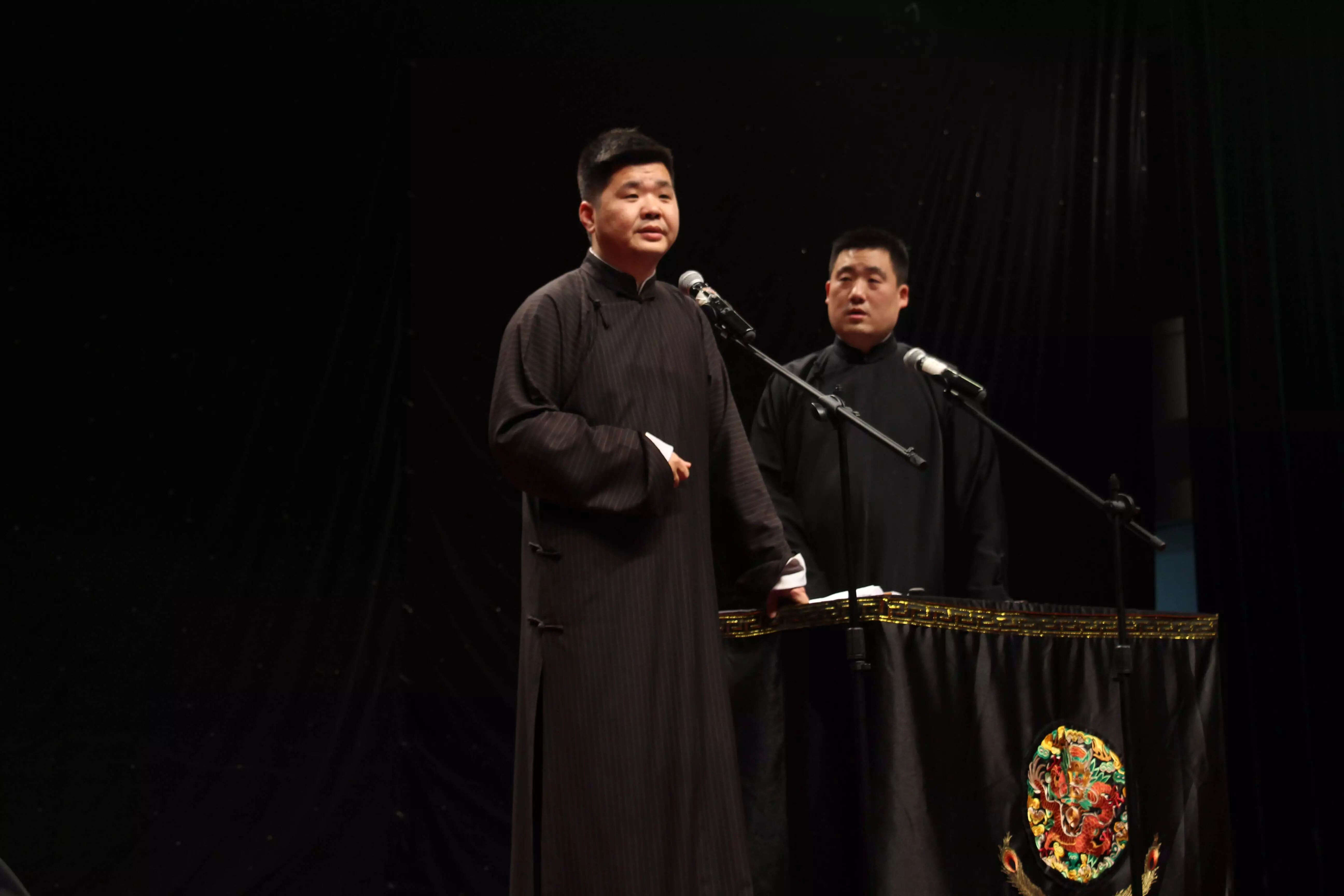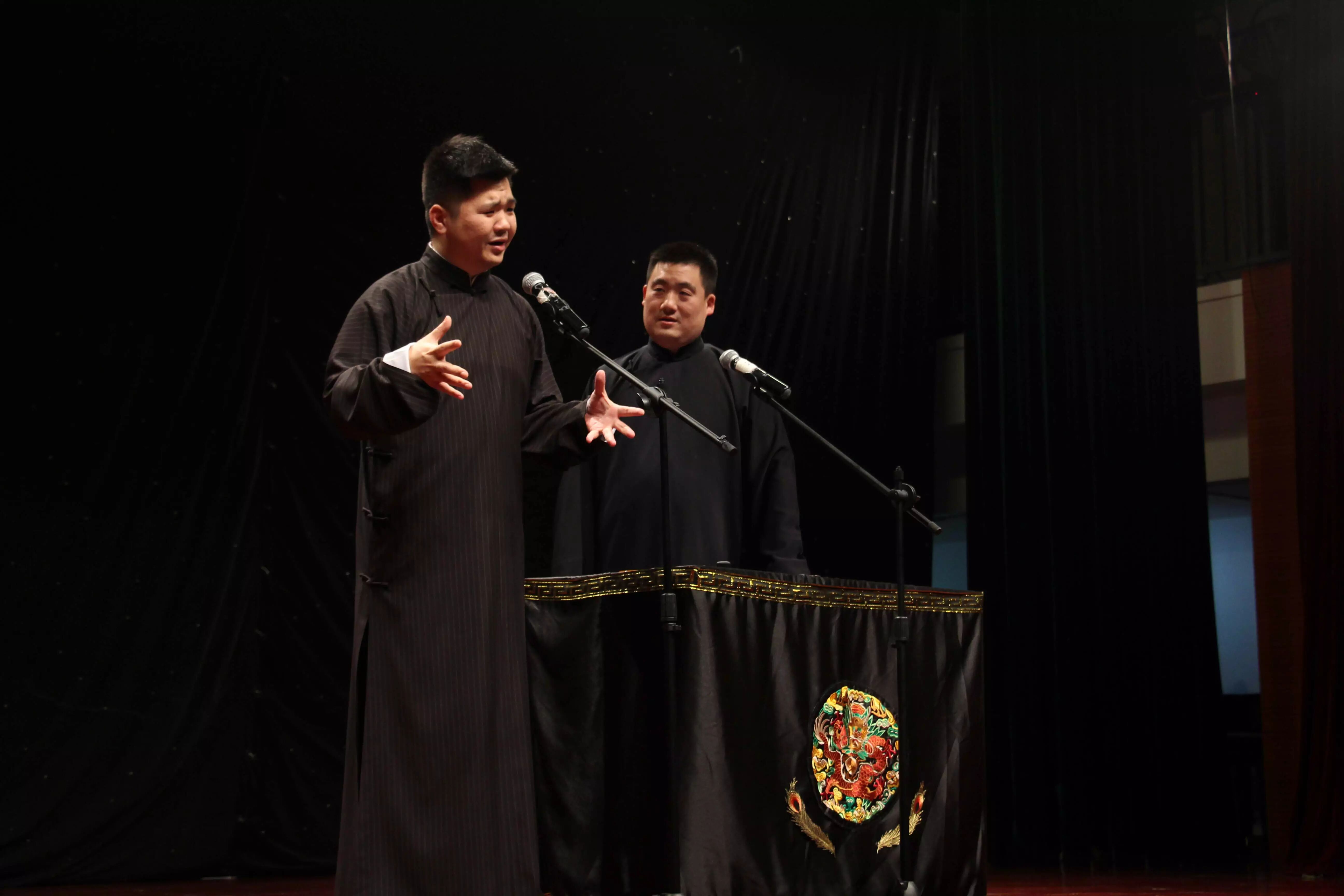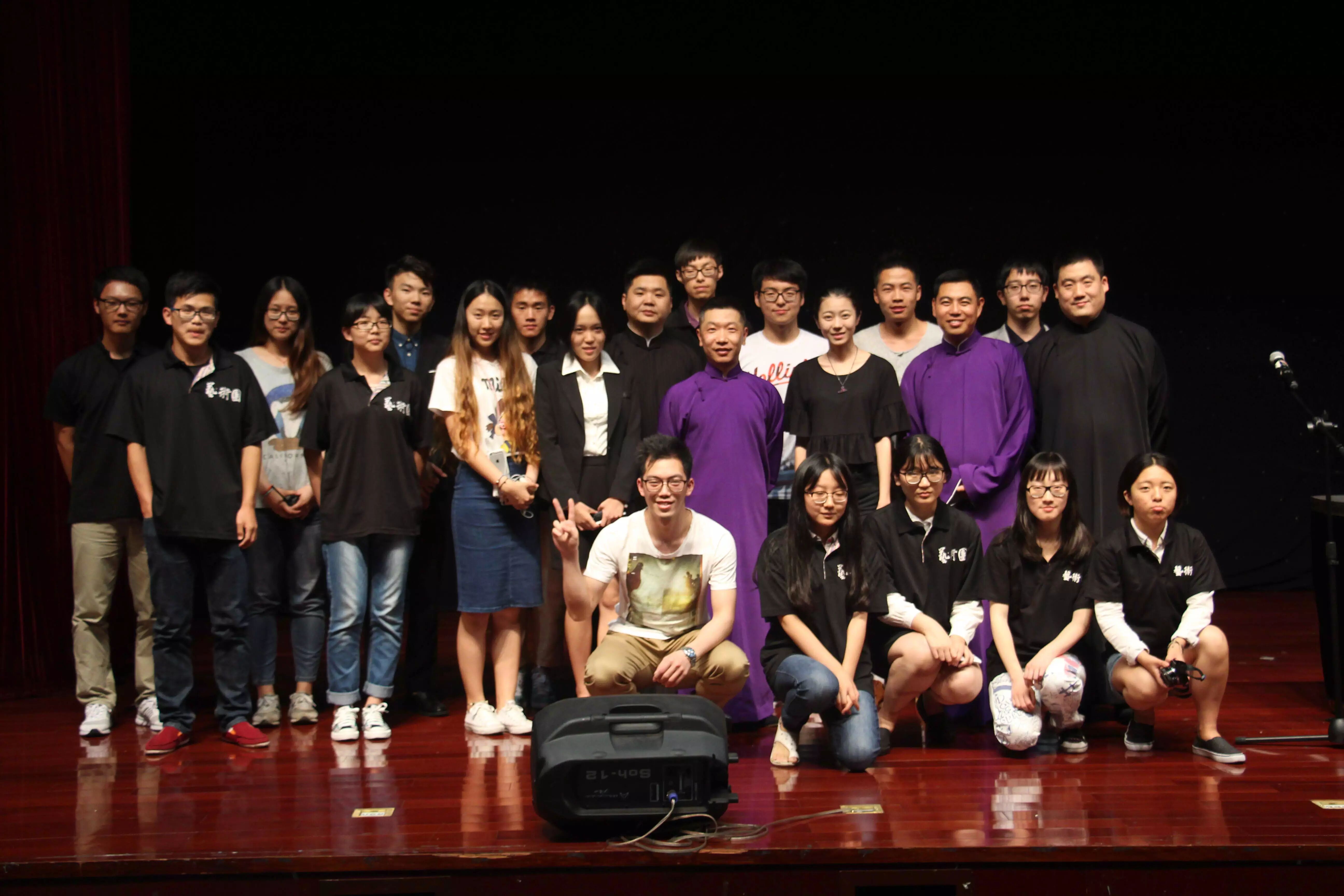 2015年6月9日19:15分,“高雅艺术进校园——德云社相声专场”在我校的小剧场举行。本次活动由上海金融学院党委宣传部校团委主办,上海金融学院大学生艺术团承办,为学生们带来一次与相声的欢乐邂逅。高鹤彩与韩鹤松两位老师,传承郭德纲相声的特点,让同学们捧腹大笑疏解压力的同时,也让同学们产生共鸣和思考。正如郭德纲在《你要高雅》中讲的:“雅与俗是相对的,彼此不可分的,雅离不开俗,俗离不开雅,俗中有雅,雅中有俗。无论雅,还是俗都与人有关,与人的生活有关,离开人的生活,谈不上雅与俗。”在德云社所奉献的三个节目:学哑语、异能达人和奇妙三国中,均展现了这个特点,即相声贴近生活、贴近观众,却依旧不乏是一门美丽的艺术。通俗浅近,雅俗共赏。.png)
