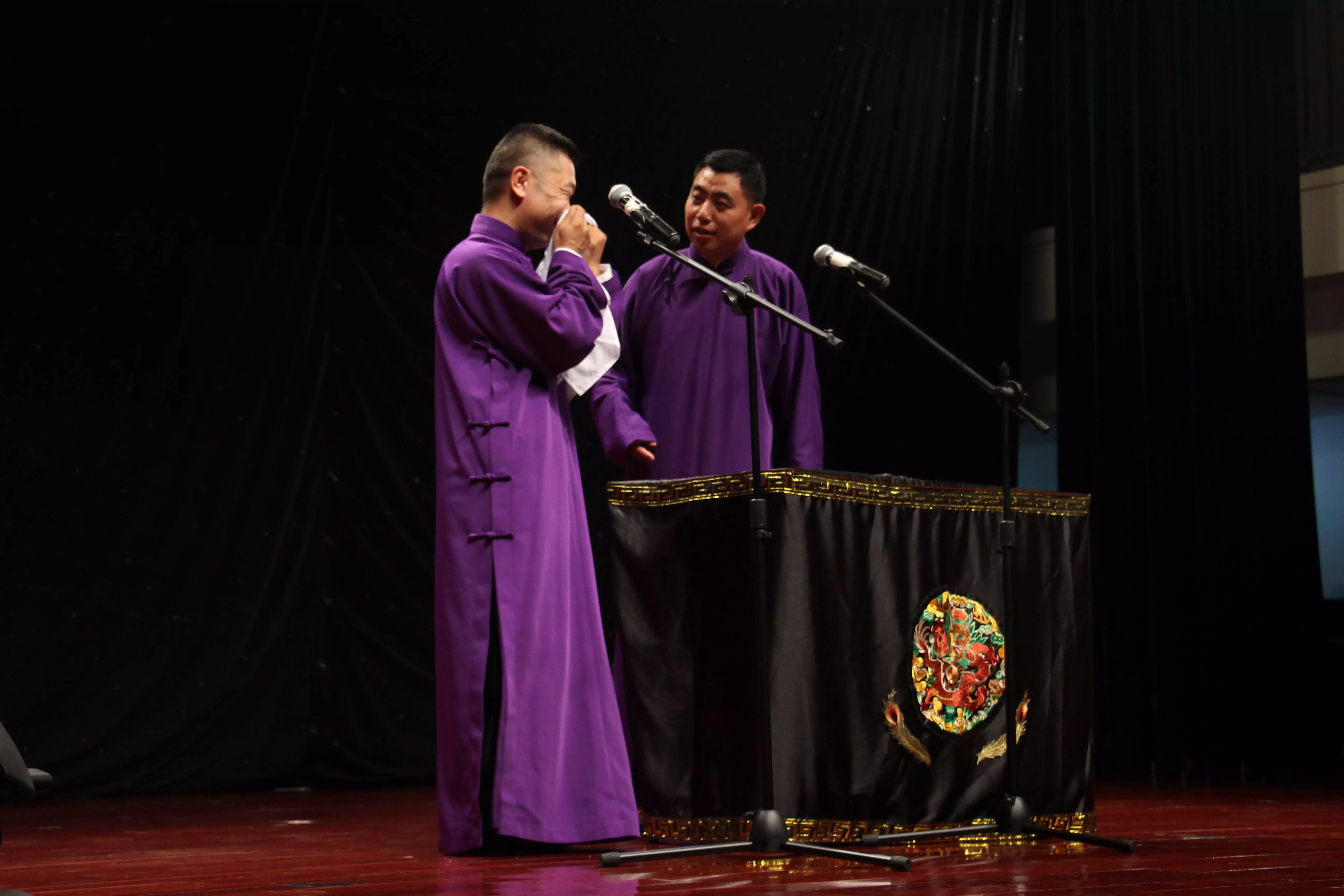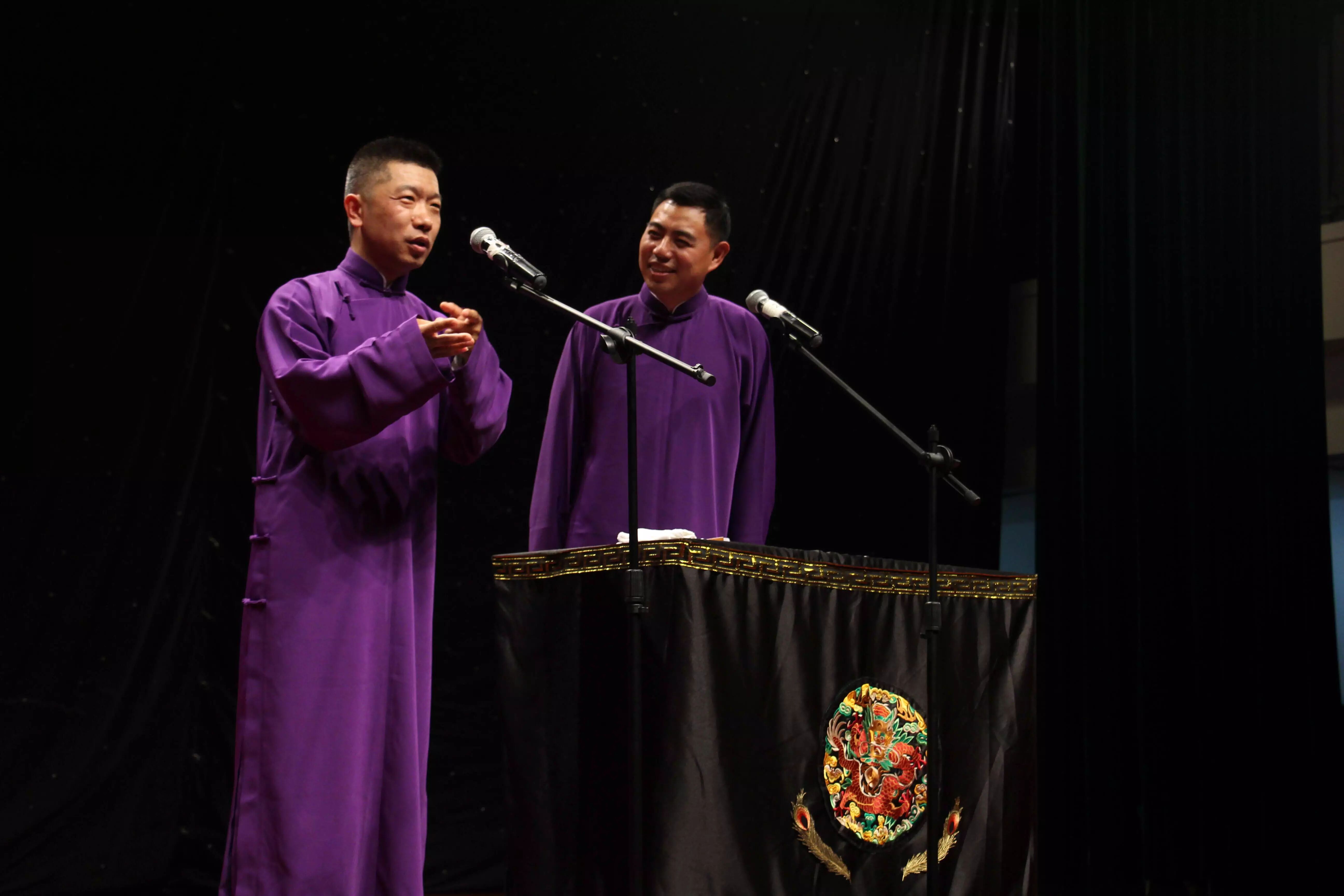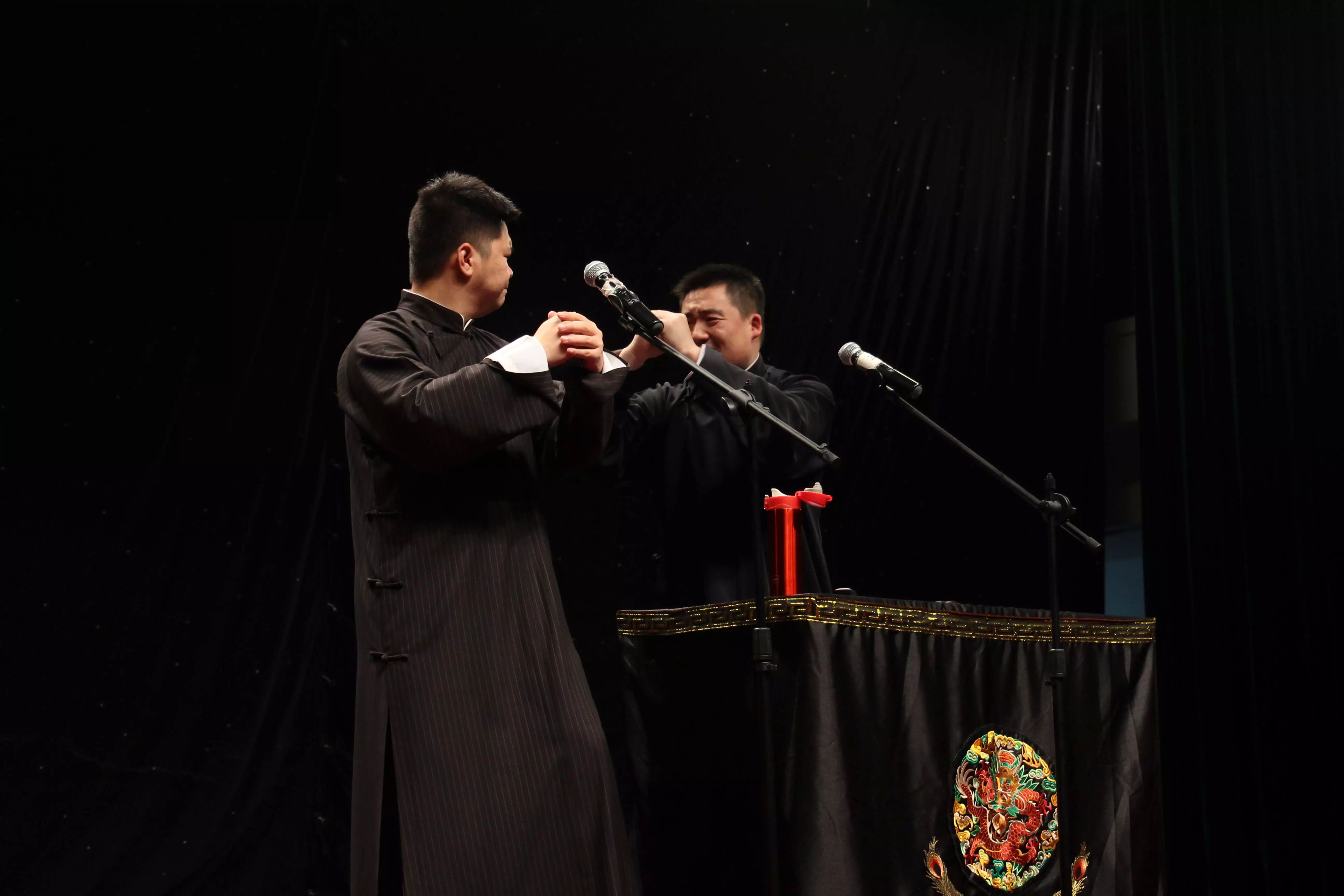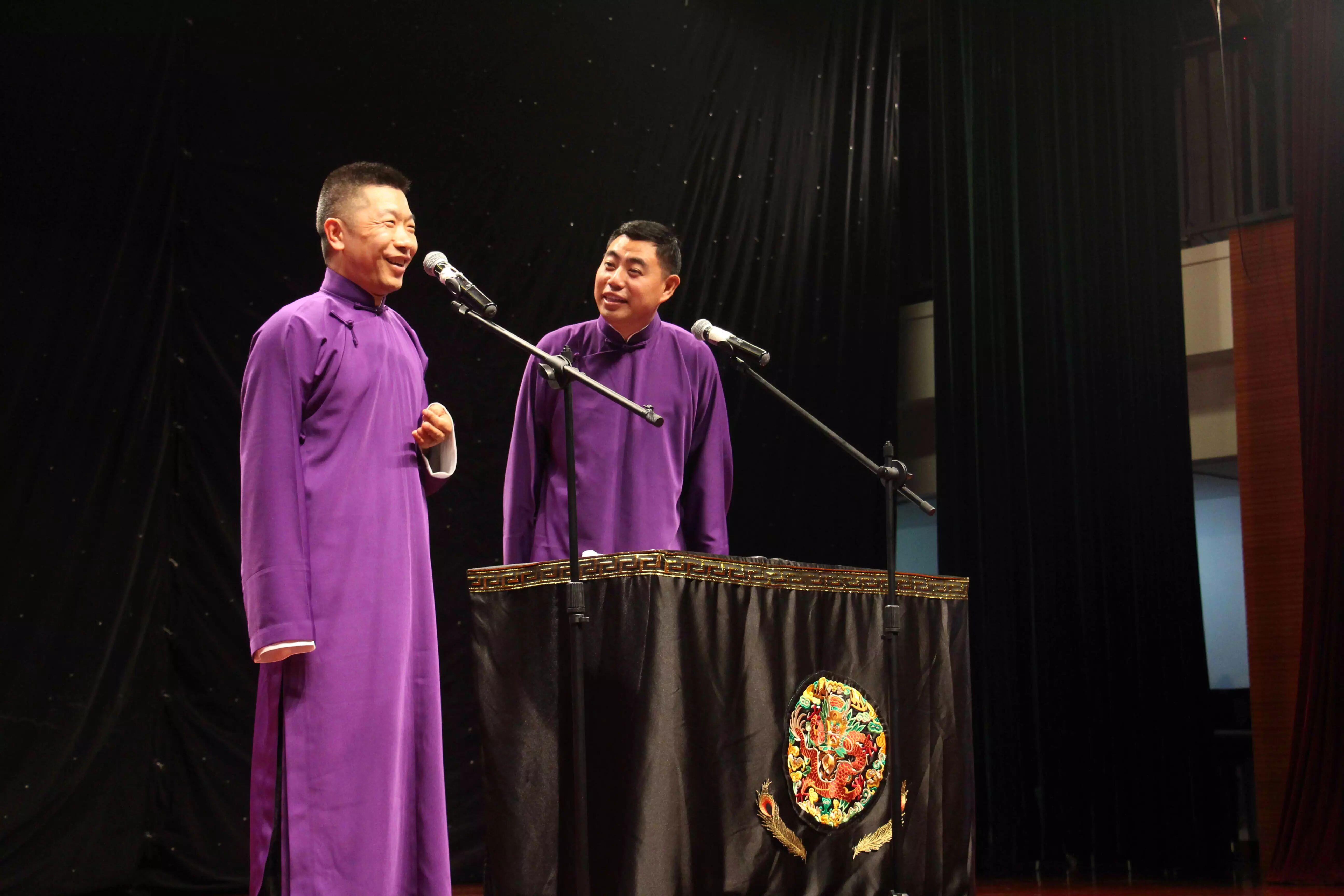 2015年6月9日19:15分,“高雅艺术进校园——德云社相声专场”在我校的小剧场举行。本次活动由上海金融学院党委宣传部校团委主办,上海金融学院大学生艺术团承办,为学生们带来一次与相声的欢乐邂逅。高鹤彩与韩鹤松两位老师,传承郭德纲相声的特点,让同学们捧腹大笑疏解压力的同时,也让同学们产生共鸣和思考。正如郭德纲在《你要高雅》中讲的:“雅与俗是相对的,彼此不可分的,雅离不开俗,俗离不开雅,俗中有雅,雅中有俗。无论雅,还是俗都与人有关,与人的生活有关,离开人的生活,谈不上雅与俗。”在德云社所奉献的三个节目:学哑语、异能达人和奇妙三国中,均展现了这个特点,即相声贴近生活、贴近观众,却依旧不乏是一门美丽的艺术。通俗浅近,雅俗共赏。.png)
