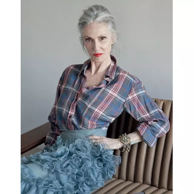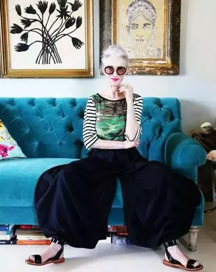 她的眼神坚定有力,笑起来也是甜甜的,虽然也是皱纹满面,皮肤松弛,但是散发的自信洒脱,优雅活力的气质让人无法忽视,在她身上也是丝毫看不出有强装青春的违和感!