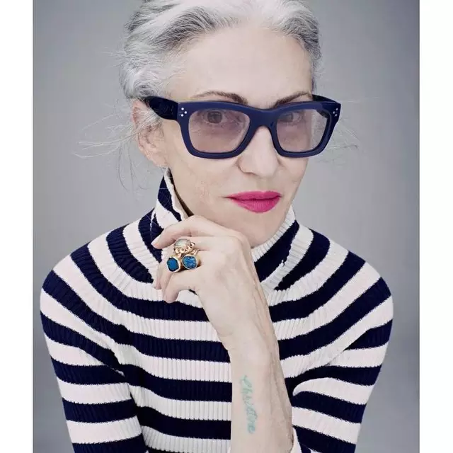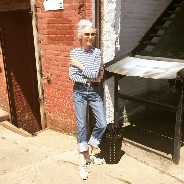 即使年过半百也不能够阻止Linda Rodin追赶潮流的心态,她的脸上挂着最时尚的妆容,身穿黑色的镂空上衣,内搭一件条纹的T,这可是潮流到了极点。