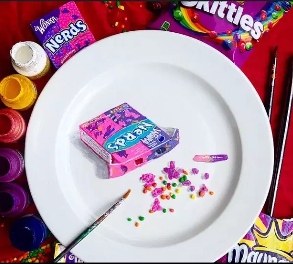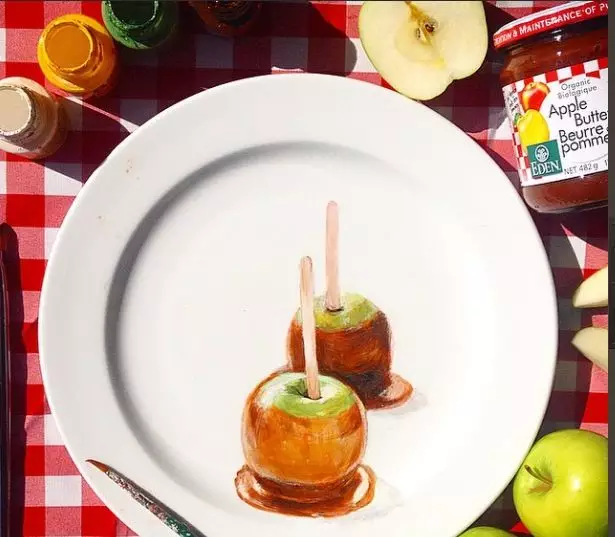艺术家Jacqueline Poirier,特别喜欢在盘子上画画,尤其喜欢画吃的。