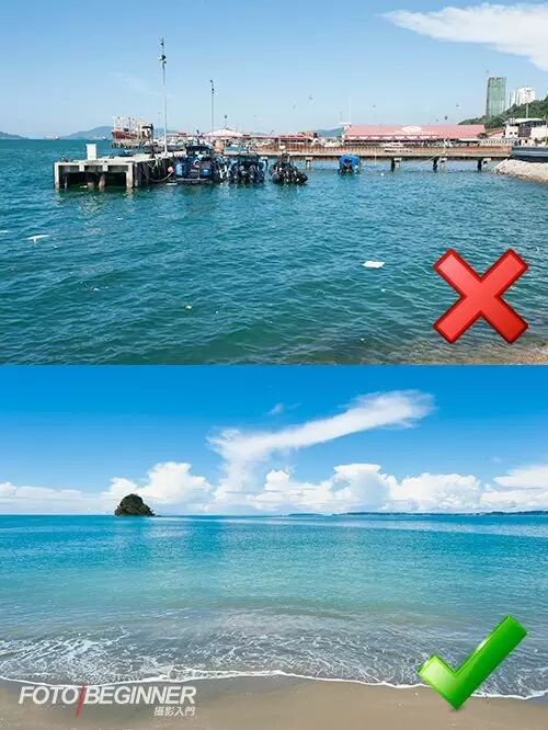 水平线倾斜是很多新手同学最容易犯的一个错误,特别是在一些有直线横线的题材上,例如海边水平线、高楼大厦、建筑物,栏杆等,如果在拍摄时没有留意水平,整张相片便会显得斜斜的,看起来不太平稳、令人产生不安全的感觉,因此要拍好相片,保持水平平衡是一个好的开始。