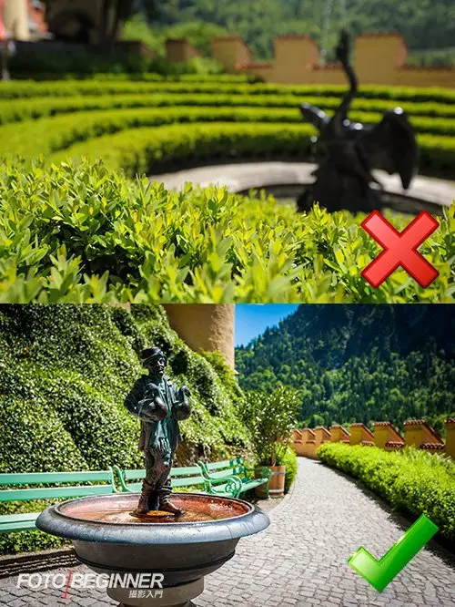 虽然拥有前景,或是有其他物件在相片中作衬托,但是初学者常常会拿一些跟主体没有太大关联的东西来使用,反而令效果不太理想。因此记得即使你要找前景,也要小心选择合适的物件。