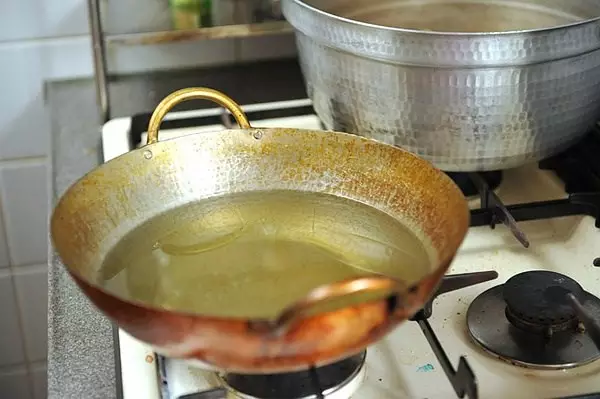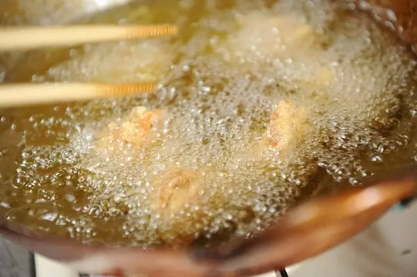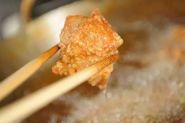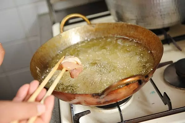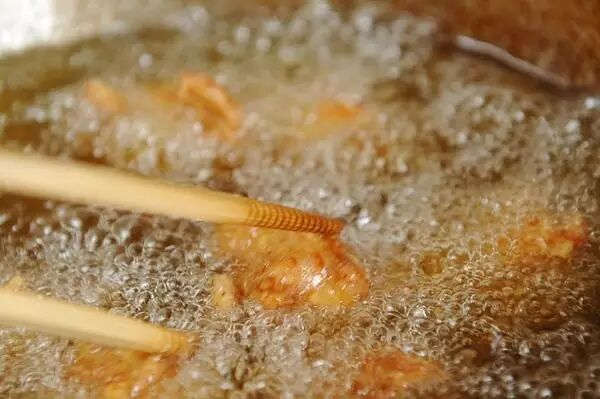 使用色拉油。等油温到170度。就是手放在锅子上方觉得热,筷子放进油里前端会冒小泡泡的程度