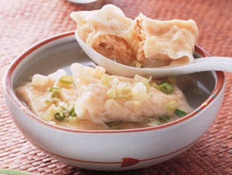 三鲜馄饨是以鲜河虾、鲜青鱼肉及鲜猪腿肉制馅,故名三鲜,吃的时候兑以鸡汤。无论是早饭,中饭还是夜宵,一碗热腾腾的三鲜馄饨无疑是上海人饭桌上最畅销的实物之一。