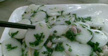 看看这白白净净的年糕,碧绿青翠的荠菜,粉白的肉丝点缀其间,是不是觉得有一种小家碧玉的感觉?尝一口,这个味道,啧啧年糕软糯不粘牙,肉丝Q弹鲜美,荠菜清爽甜香,简简单单到不行的组合,却会有令人amazing的口感!
