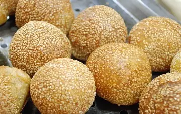 最喜欢吃里面是豆沙馅的,一口咬下去,糯米带着外层的白色芝麻嚼起来特别有劲,伴着不多的豆沙馅,甜度也是刚刚好,基本上只要路过看到麻球都会买上一个!