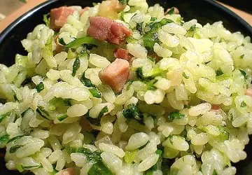 中国民间一种特色食品,将菜肴与主食结合在一起,制作方便,味道鲜美,颇受百姓好评。唯有这样浓缩时光的精华的咸肉,才能够吊出菜饭的鲜味。炒好新鲜的青菜,和米饭一拌,加入一点点的猪油,和饭一起烘熟,那个香啊,连吃3大碗都没问题。