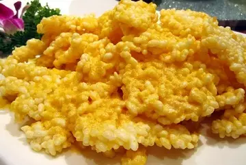 小时候最喜欢吃外婆做的这道美味了,特别是在油锅里滋滋作响的时候,那个香味实在让人情不自禁想马上吃到!锅巴炸得很酥松,咸蛋黄用料要足啊!