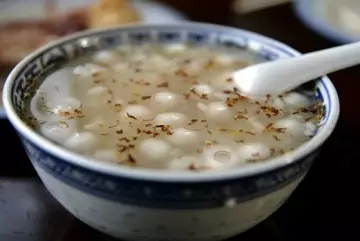 酒酿圆子的历史可以追溯到清代,甜而醇的酒酿,配上糯而Q的小圆子,考究点的圆子还有各种味道的馅料,上桌前撒一圈桂花,飘香四溢,未尝心已醉。