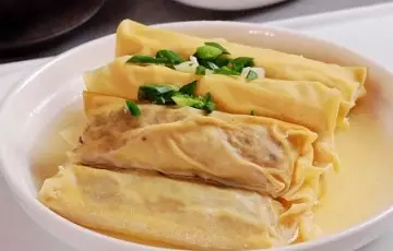 千张包和我们经常地百叶包其实是不同的,千张包更细致,里面的“花头”也更丰富,开洋、火腿、猪腿肉泥,好食材加上极品的吊鲜辅料,这千张包能不好吃吗?
