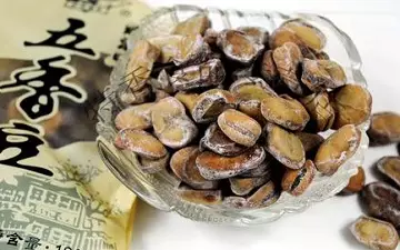 真宗的上海奶油五香豆是以嘉定“三白蚕豆”为原料,添加茴香、陈皮、桂皮、食糖、香精等配料烧制,使蚕豆口感软中带硬,咸中带甜。这也是上海较早使用食用香精的食品,未尝味已闻到一股清淡的奶油香味,遂称“奶油五香豆”。上海现在的五香豆中,当属城隍庙的最为正宗。