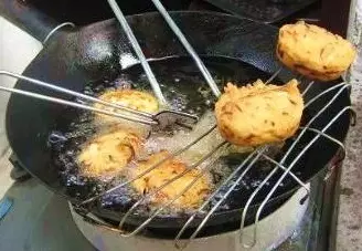 传统的做法是将调稀的面糊,少许倒入椭圆形铁勺中,加葱花和白萝卜丝、鲜肉或豆沙做成的园团,再覆以面糊入油锅炸,这个就是油墩子了。