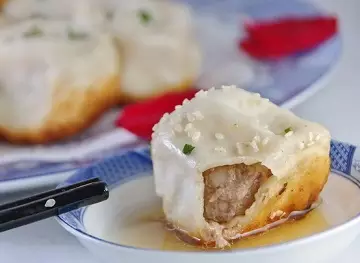 上海人秉承一贯的精打细算,烧卖里的馅比较经济,外面一张烧卖皮,里面是一团米饭。但就是这一团米饭,也可以做出别样的滋味来!