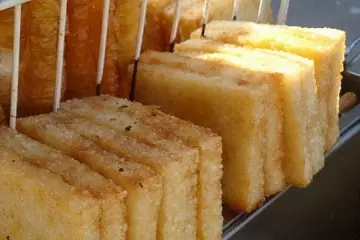 崇明糕是上海人必吃的食品之一,崇明糕不仅好吃,还代表着团圆、美满、幸福和甜蜜。崇明糕有硬糕和松糕两种,松糕一般吃冷的,硬糕一般都是热过了以后再吃,有时候是蒸热,有时候是放些酒酿做成酒酿糕丝汤,很好吃。