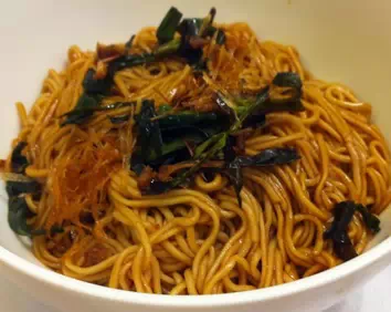 食材简单到略显朴素,但以熬香的葱油加上烧透的开洋,和面条一起拌着来吃,那种满足的味道即使桌子上有再多的小菜,保证你看也不会看一眼。