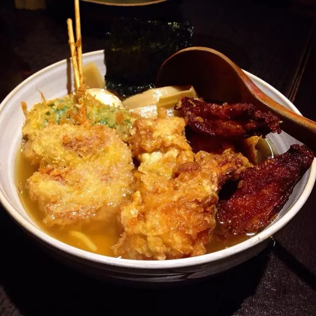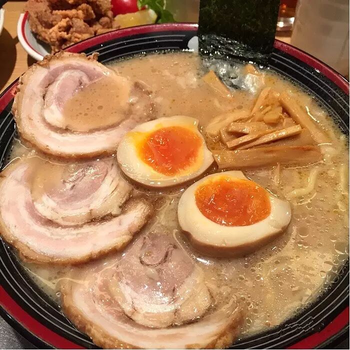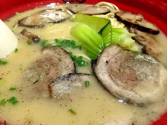 传说中日本东京的超人气拉面。是骨汤面与酱油汤面的结合版拉面~其招牌豚骨拉面,坚持手工制面,每天用上千元猪骨炖4-5小时的浓汤。配上秘制酱油,汤底浓郁鲜美,面条弹牙爽口,配料也是十分丰富。汤头好赞!