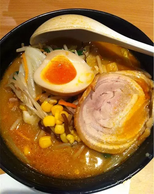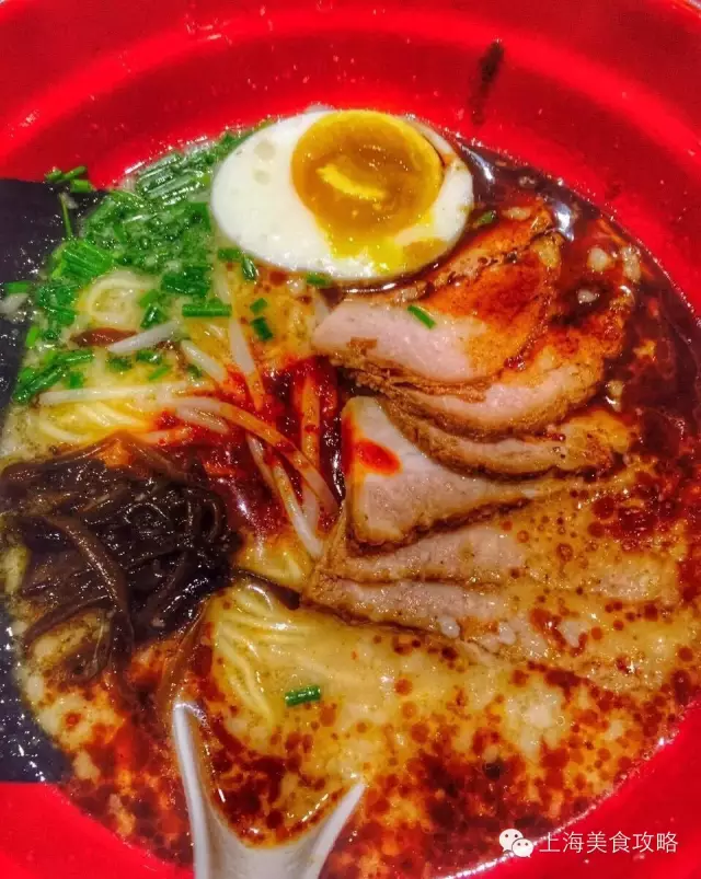 汤底中再加入了特制的红蒜油味噌,就是口感更为浓郁鲜明的特制赤丸,其中的叉烧也有讲究:瘦的是肩肉叉烧,吃口肥厚的是腩肉叉烧,喜欢微辣质感的,不妨试试这碗吧!
