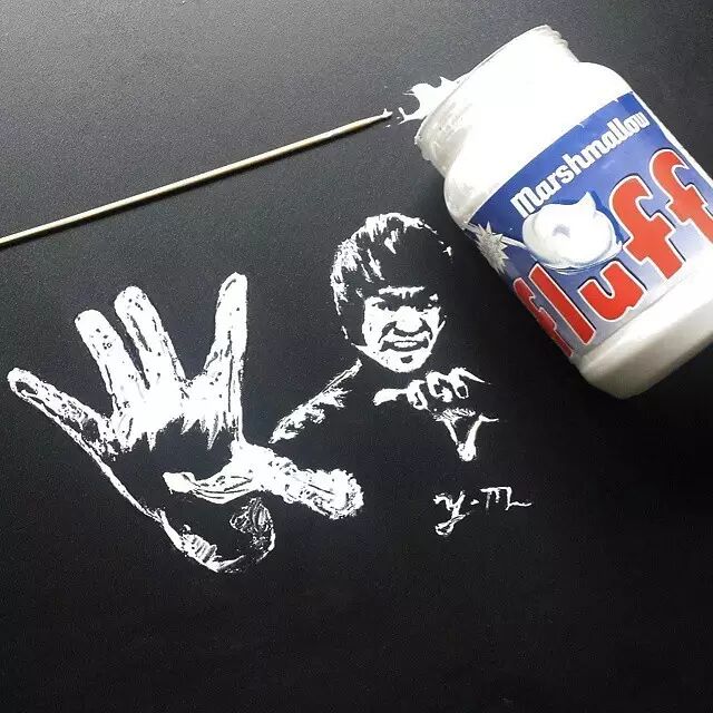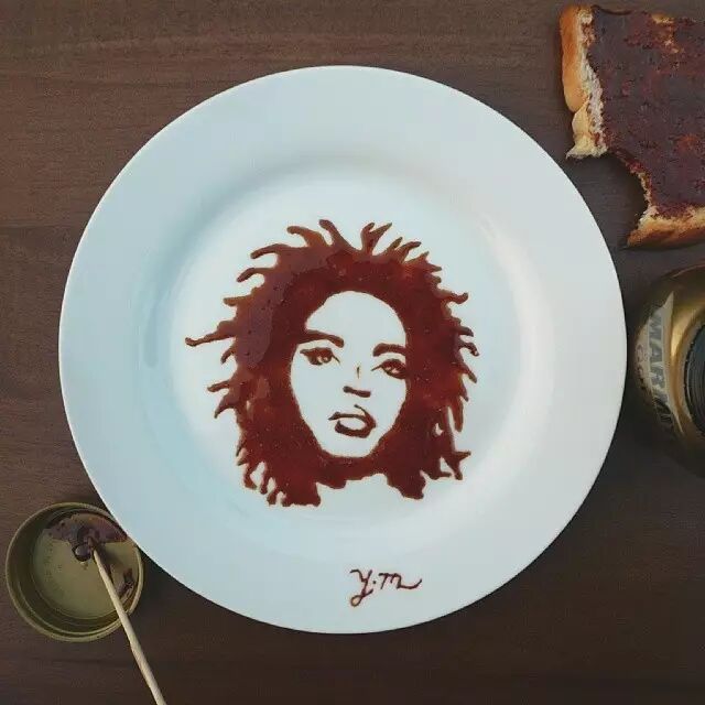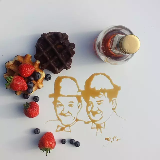 将他用牛奶、果酱等食品绘制的名人肖像发布在Instagram上,吸引了众多网友的关注。