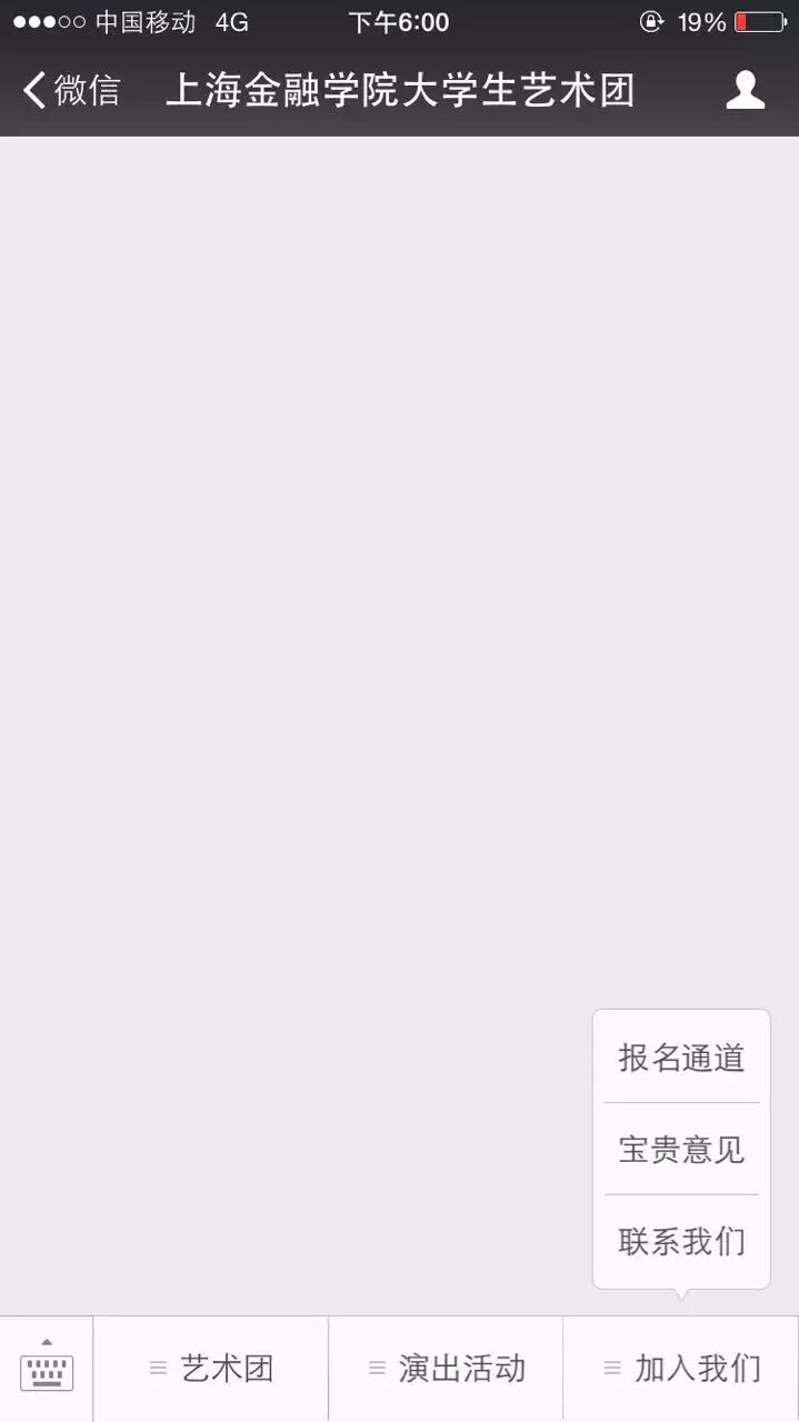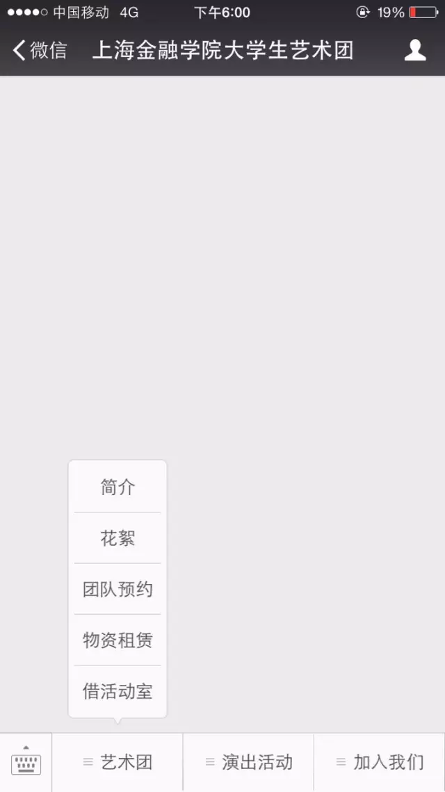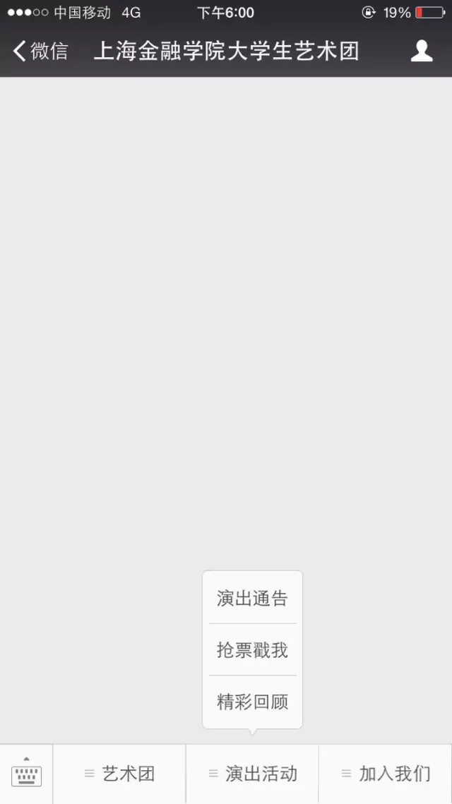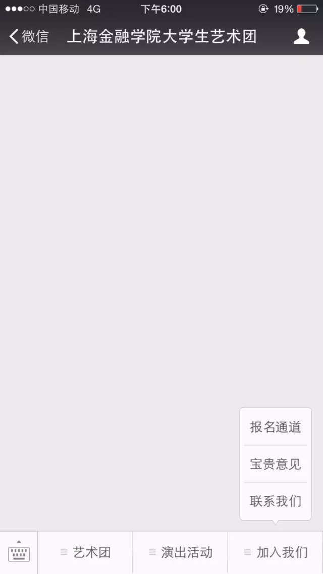 进入“上海金融学院大学生艺术团”微信平台,