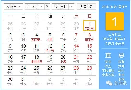 5月1日(星期日、“五一”国际劳动节)为法定节假日