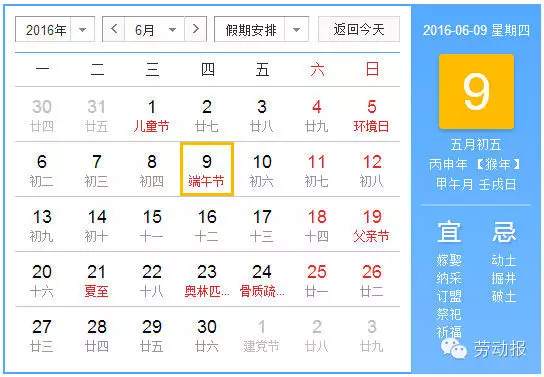 6月9日(星期四,农历端午节当日)为国家法定节假日