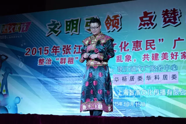 2015年10月15日,上海金融学院校团委副书记张晓明老师携翚鸿舞蹈团的成员来到了张江镇文化服务中心参加了由张江镇文广服务中心主办,劳动居委承办的2015年张江镇“文化惠民”广场文艺巡演——整治‘群租’‘三违’乱象,共建美好家园专题演出。