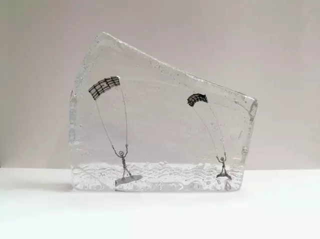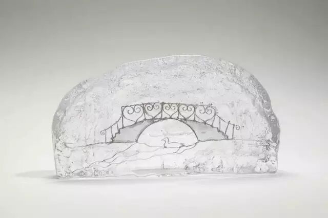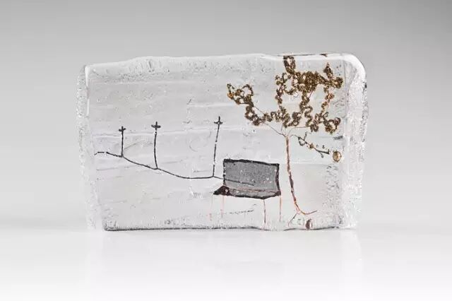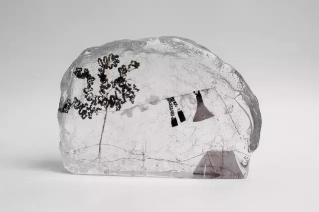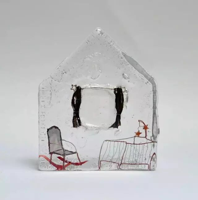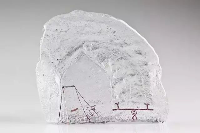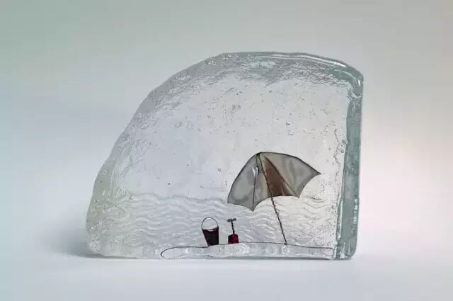 用细钢丝、金箔纸、金属小球等材料,将平凡生活中的迷你场景冻结在犹如冰块一般的熔融玻璃中。飞舞在春风中的洗净的衣服,坐在公园的长凳上的一对情侣,随风轻轻摇动的秋千……她的创作源于周围的生活,更尝试用她女儿的眼光来看世界,找寻美好却容易被忽视的瞬间,晶莹剔透的“冰块”也正如易逝的美好,仿佛会随着时间慢慢融化。的秋千……她的创作源于周围的生活,更尝试用她女儿的眼光来看世界,找寻美好却容易被忽视的瞬间,晶莹剔透的“冰块”也正如易逝的美好,仿佛会随着时间慢慢融化。