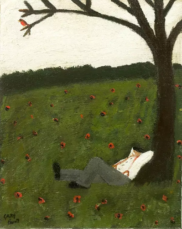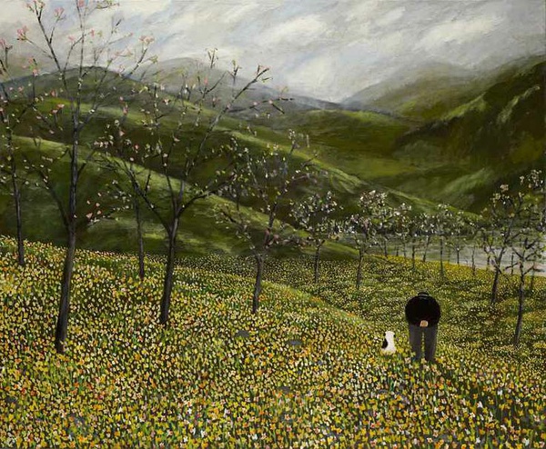 他的题材多取材于日常生活的细碎和个人的回忆。每幅画他都有配上一首小诗,他热爱描绘自己生活里的所有碎碎念,以及热爱诗与画的组合,命运给了他考验,他却依然回到了他的天命之路。