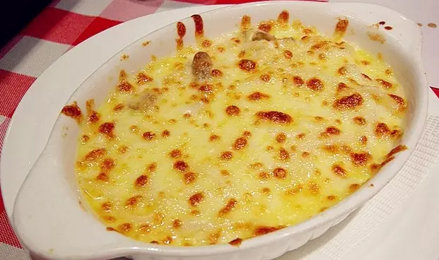 去德大,除了经典的罗宋汤和炸猪排,不能不吃德大色拉和芝士焗蟹斗。色拉和罗宋汤、炸猪排一样属于上海人的改良西菜,用的是土豆、胡萝卜、方腿、青豆,色拉酱是新鲜鸡蛋活生生手打出来,与其说吃色拉,不如说色拉酱更有魅力。而蟹斗可能是法菜焗蜗牛经历无数演变,整合了无数上海人对大闸蟹的痴迷和对改良西餐的爱好,而发明的智慧结晶。刚上菜的时候,满满的蟹粉还藏在下面,令人充满想想,上面则是热的芝士此起彼伏地鼓起来,陷下去。这是个美好的菜,让人几乎想要睡在上面。