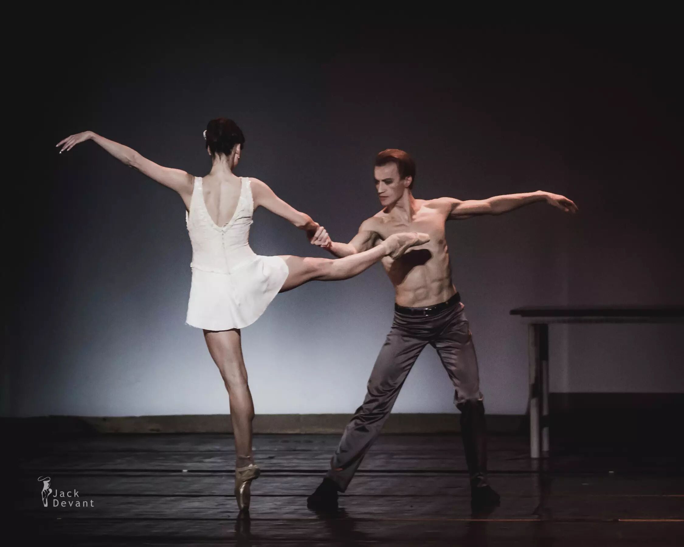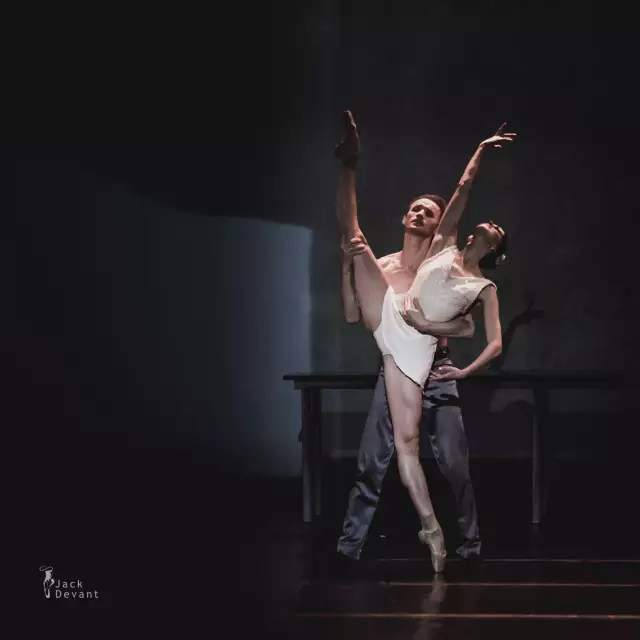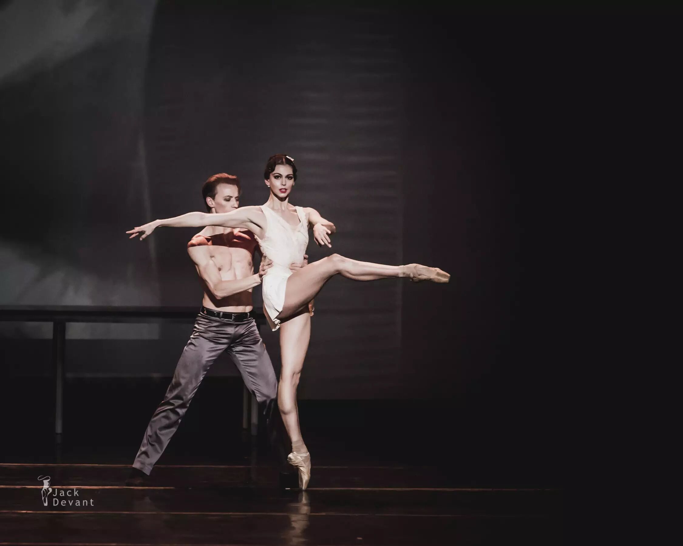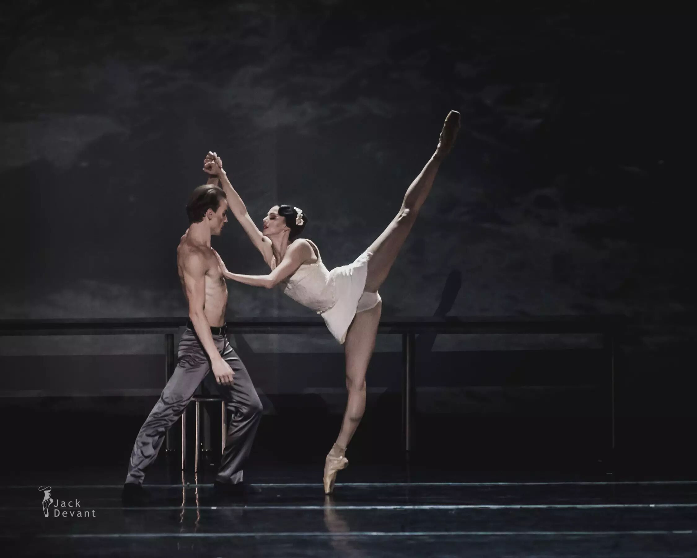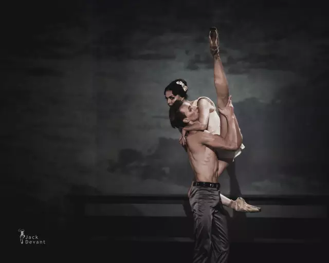 照片中的作品为现代芭蕾《了不起的盖茨比》第二幕。主演演员是马林斯基一级独舞Anastasia Matvienko,饰演Daisy;马林斯基客座首席Denis Matvienko,饰演Jay Gatsby。摄影:Jack Devant。
