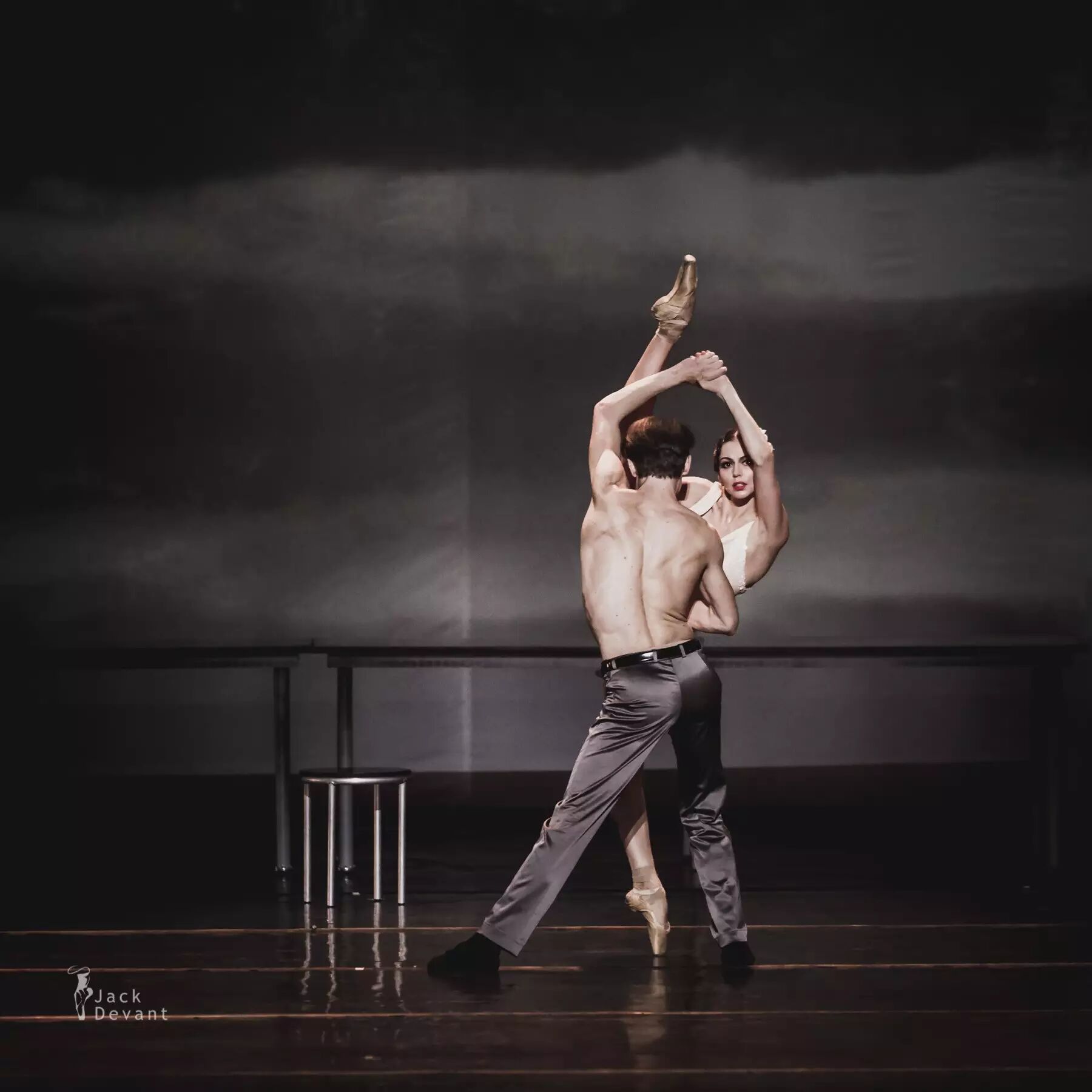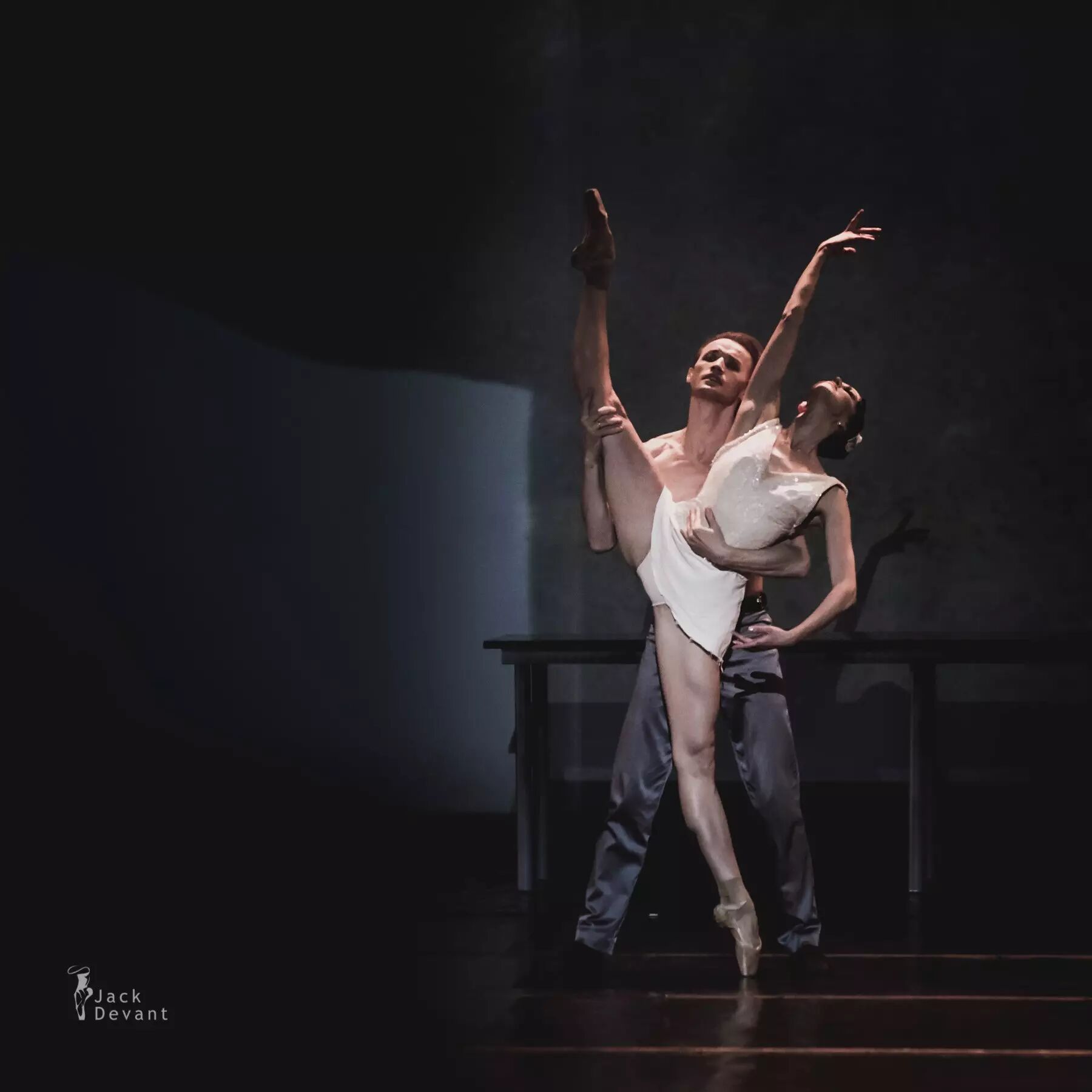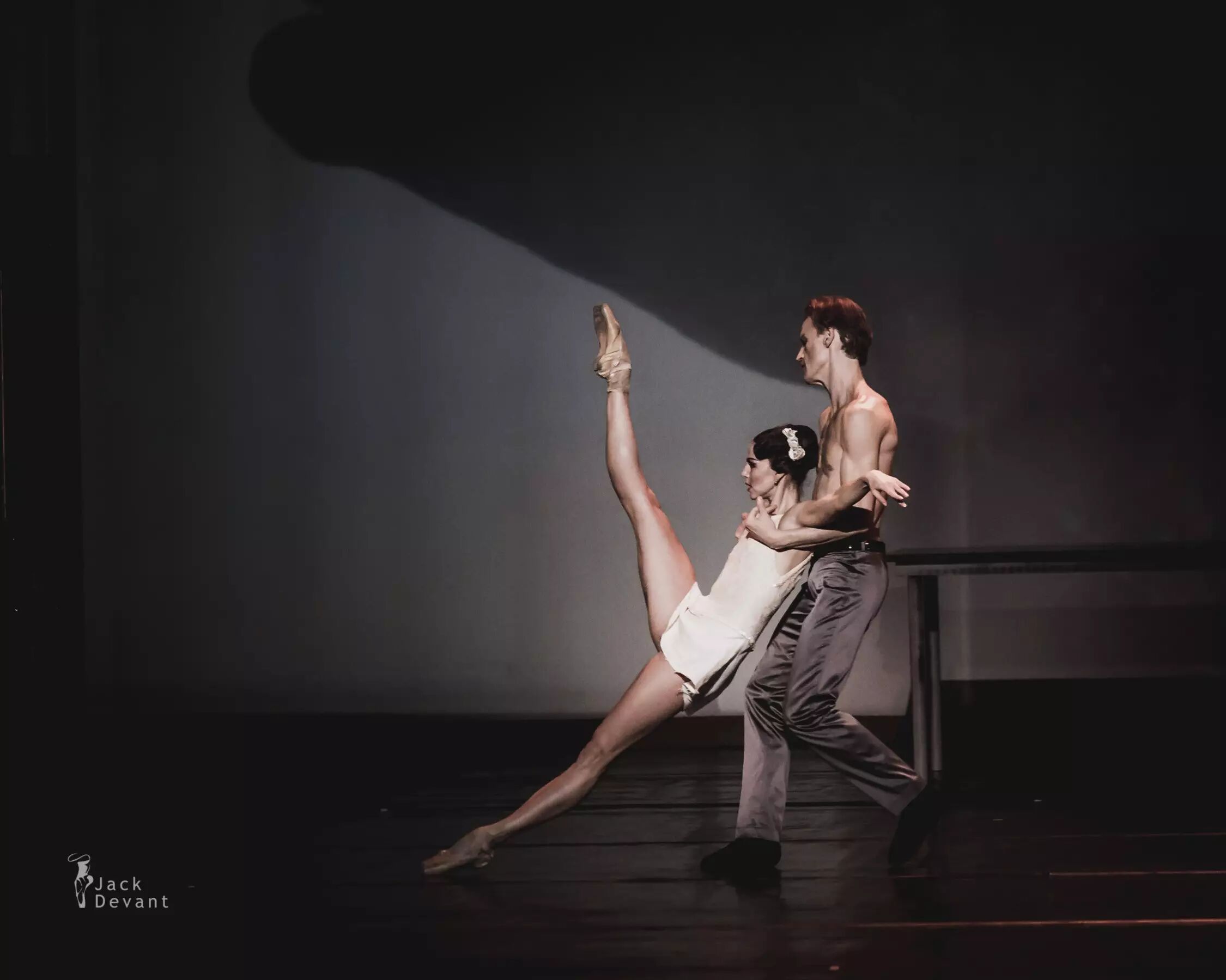 照片中的作品为现代芭蕾《了不起的盖茨比》第二幕。主演演员是马林斯基一级独舞Anastasia Matvienko,饰演Daisy;马林斯基客座首席Denis Matvienko,饰演Jay Gatsby。摄影:Jack Devant。