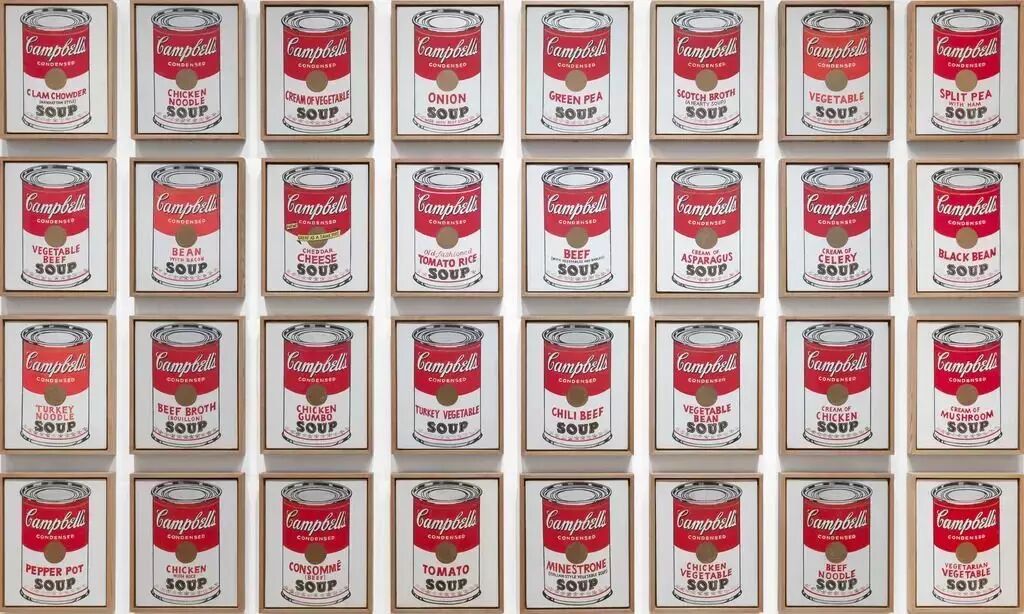 1962 年,他创作的《金宝汤罐头》(Campbell’s Soup Cans)在洛杉矶展出,它包括 32 块帆布,每一块都画上了一个金宝汤罐头,使用半机械化的丝网印刷技术完成。这个现在被看作是沃霍尔代表作的作品,在当时的反响却很一般。反而是这场展览所引发的关于“沃霍尔到底是不是一个艺术家”、“《金宝汤罐头》是否有艺术价值” 的讨论,让当时还没什么影响力的沃霍尔成为了艺术圈里的谈资。