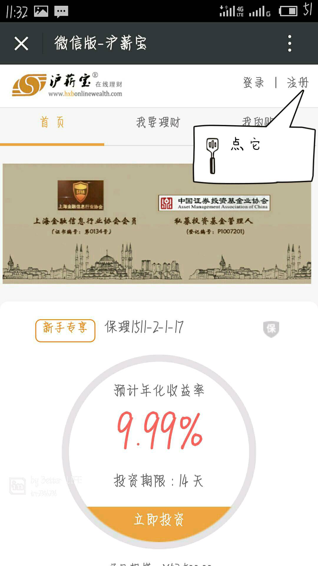 第三步:进入公众号就是这个样子,点左下角“我要注册”