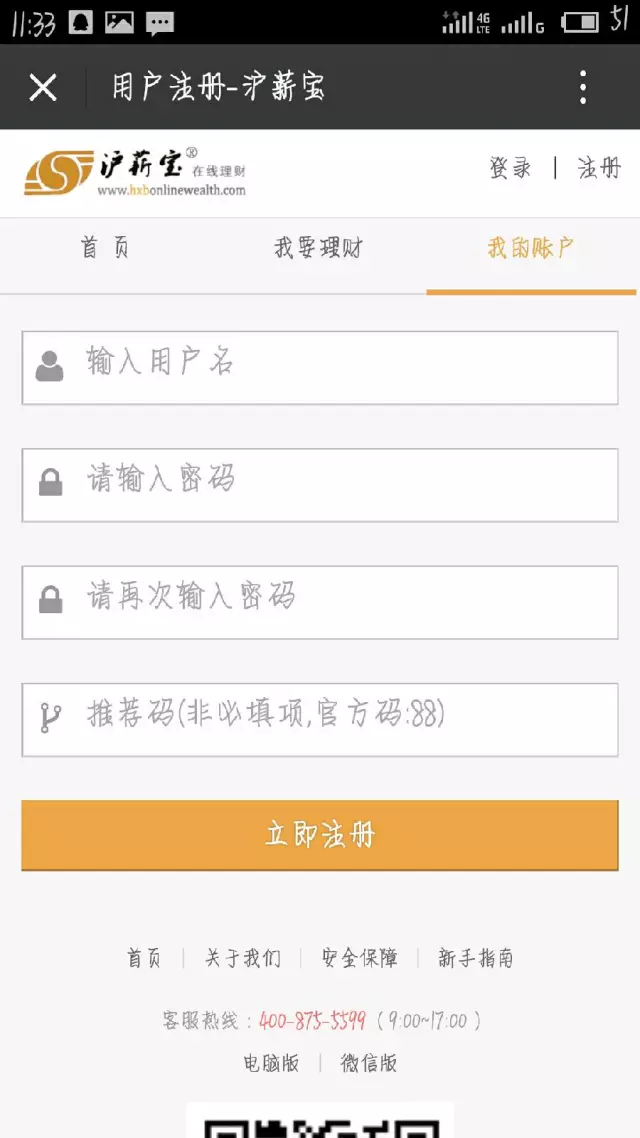 第三步:进入公众号就是这个样子,点左下角“我要注册”
