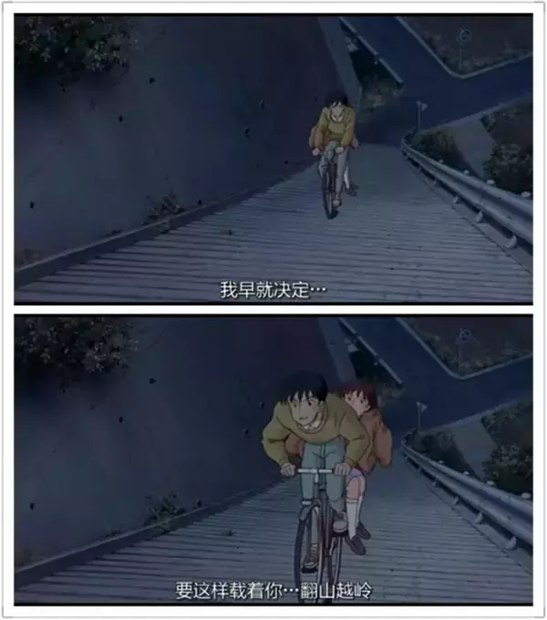 《侧耳倾听》里那句:“我早就决定,要这样载着你,翻山越岭……”