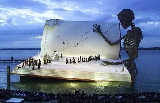 湖上舞台,也被称为漂浮舞台,位于康斯坦茨湖岸。该剧场设有7000个座位,常作为布雷根茨音乐节期间大型歌剧以及音乐剧的表演场地。2008年电影《007大破量子危机》曾在这里取景。