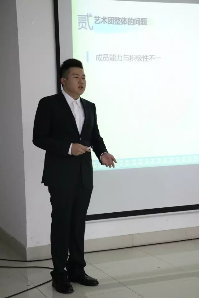 艺术团职能部门分为办公室、资管部、外联部、企宣部。这次换届竞选大二的部助们充分准备了很多有关部门进步和艺术团发展的想法,也指出了艺术团与各个部门存在的各种问题,希望在换届之后可以通过自己的领导和大家的一致努力使艺术团再上新高度,并在幕后更好的服务艺术团的直属团队。