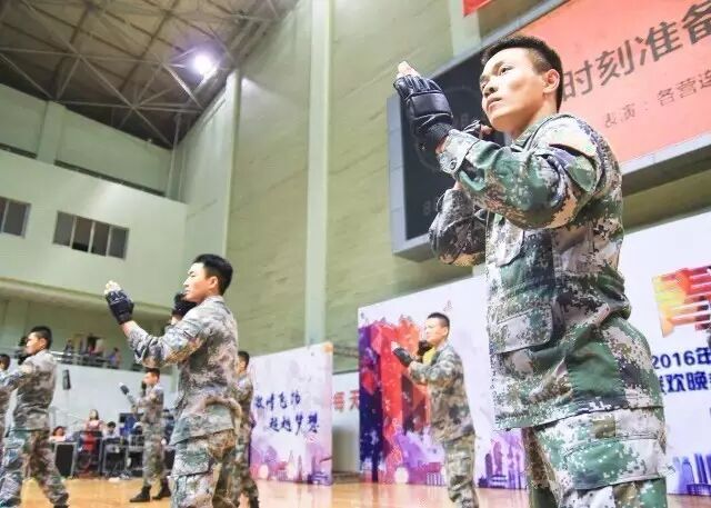 在红色主旋律还萦绕之际,倪龚磊、吴怡等同学通过朗诵《长征之行路漫漫》向教官表达了由衷的感谢与美好的祝福。军民联欢,有民必然少不了军,终于轮到全场同学等候许久的教官表演了。