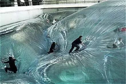 来自阿根廷艺术家Tomas Saraceno的这座透明薄膜城堡,高24米,面积400平方米,共分3层。走在上面能体验到漫步云端的感觉,人们的律动会通过它传递给彼此。Tomas希望通过这个作品让人们意识到我们对地球会有怎样的影响,从中得到空间与情感上的双重体验。