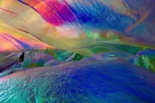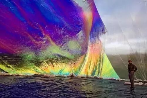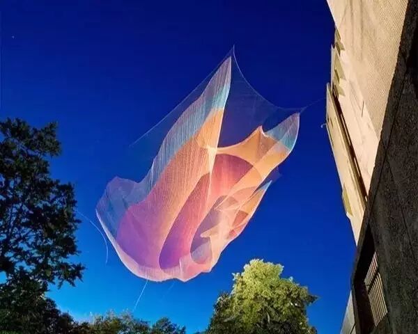 即使从小到大不知见过多少道彩虹,跨过整片天空的巨大彩虹也没少见过,但无论什么场景、无论什么时候看到彩虹都是那么令人喜悦,甚至浇花洒水时产生的迷你人工彩虹也是如此,艺术家Janet Echelman在印度渔村游历时受到启发,开启了巨型“空中渔网”的创作。
